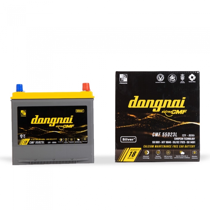Bình ắc quy Đồng Nai EXTRA CMF 55D23L là loại ắc quy kín khí, khô, miễn bảo dưỡng, sử dụng cho các dòng xe công suất lớn cùng nhiều đặc tính ưu việt: