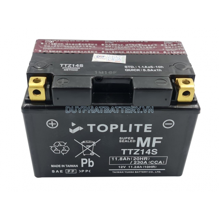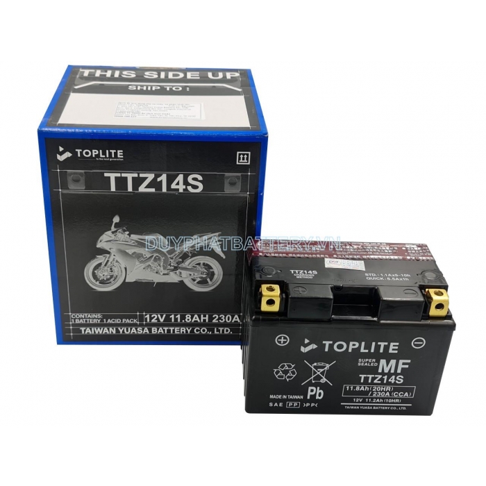 Bình ắc quy TOPLITE TTZ14S là một loại bình ắc quy khô được sử dụng phổ biến trong các loại xe mô tô, xe địa hình và xe phân khối lớn. Bình ắc quy này có dung lượng 11.2Ah và điện áp 12V.
