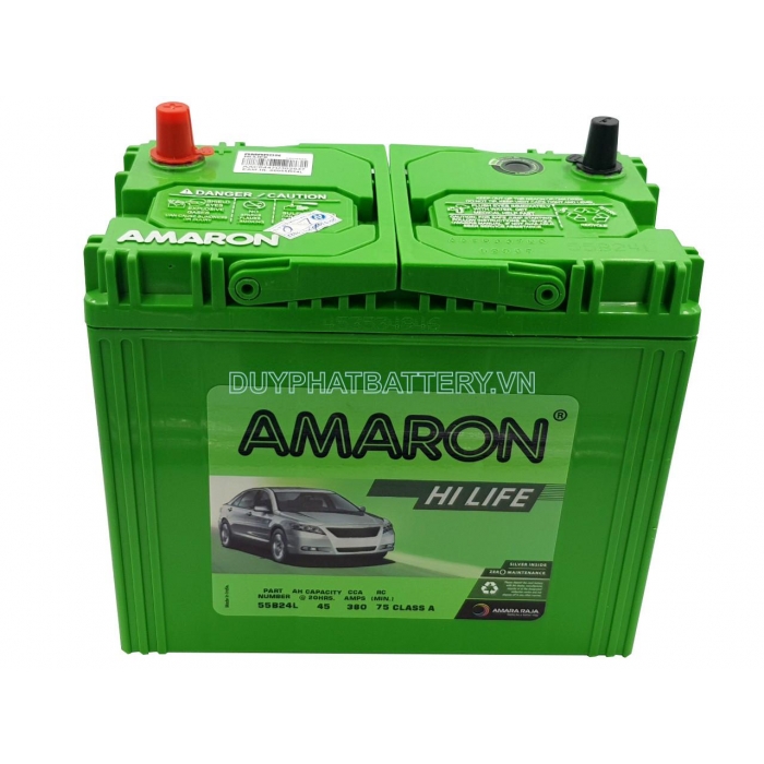 Bình ắc quy Amaron 55B24LS có kích thước quy chuẩn B24 (Chiều dài bình ắc quy tối đa 24cm), cọc nghịch, kiểu cọc lớn, không có chân đế, sử dụng cho các dòng xe công suất phổ thông với màu xanh lá cây đặc trưng cùng nhiều đặc tính ưu việt: