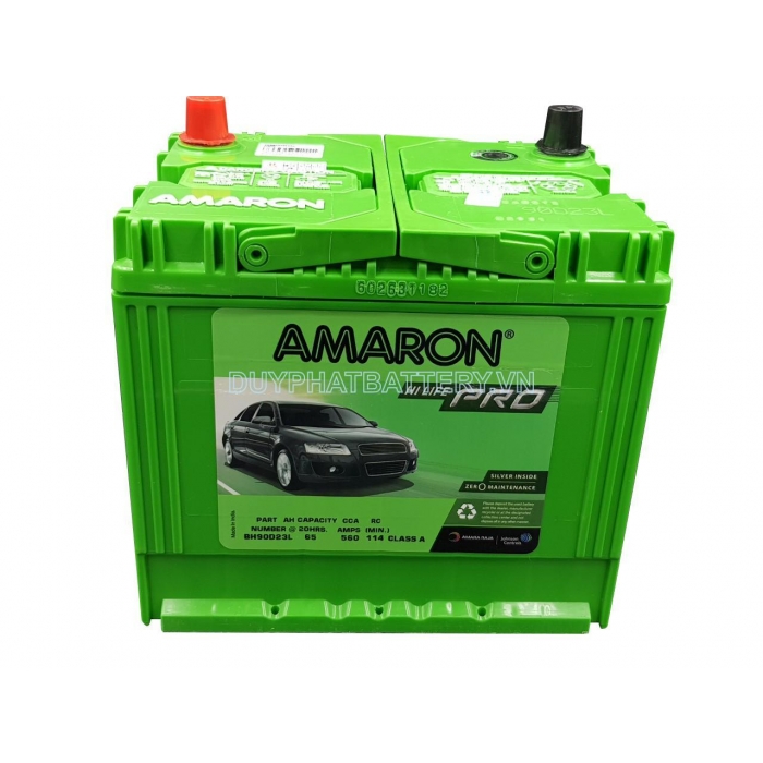 Bình ắc quy Amaron BH90D23L có kích thước quy chuẩn D23 (chiều dài bình ắc quy tối đa 23cm), sử dụng cho các dòng xe công suất lớn với màu xanh lá cây đặc trưng cùng nhiều đặc tính ưu việt: