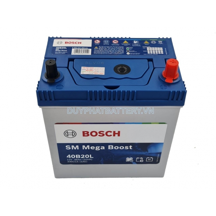 Bình ắc quy Bosch 40B20L có kích thước quy chuẩn B20 (Chiều dài bình ắc quy tối đa 200mm), cọc nghịch, kiểu cọc tiêu chuẩn, thuộc phân khúc Bosch SM Mega Boost là sự lựa chọn tối ưu dành cho các dòng xe tiêu chuẩn không có công nghệ dừng khởi động Start-Stop với năng lượng mạnh mẽ cùng hiệu suất khởi động ổn định