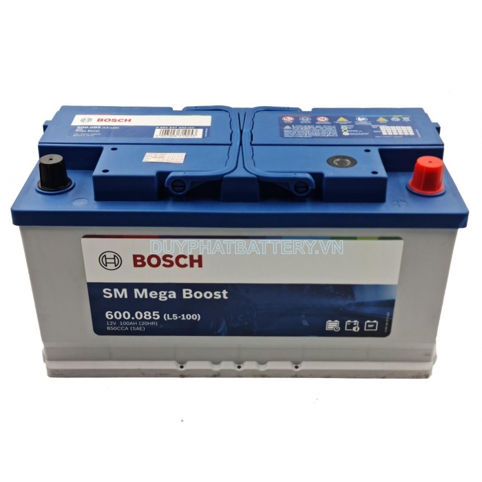 Bình ắc quy Bosch DIN 600.085 có kích thước quy chuẩn LN5 (Chiều dài bình ắc quy tối đa 351mm), cọc nghịch, kiểu cọc tiêu chuẩn, thuộc phân khúc Bosch SM Mega Boost là sự lựa chọn tối ưu dành cho các dòng xe tiêu chuẩn không có công nghệ dừng khởi động Start-Stop với năng lượng mạnh mẽ cùng hiệu suất khởi động ổn định
