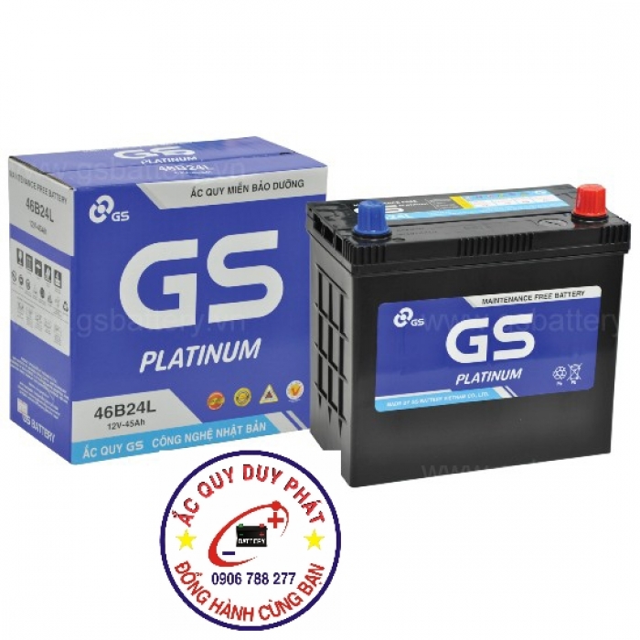 Bình ắc quy GS khô 46B24L (12V-45AH) do Công Ty TNHH Ắc Quy GS Việt Nam Sản Xuất, là một công ty 100% vốn nước ngoài, liên doanh giữa Tập Đoàn GS - YUASA - Nhà sản xuất Ắc Quy axit chì hàng đầu Châu Á, chuyên sản xuất các loại Bình Ắc Quy Ô Tô - Xe Máy và Tập Đoàn MITSUBISHI - Tập Đoàn thương mại lớn nhất Nhật Bản.