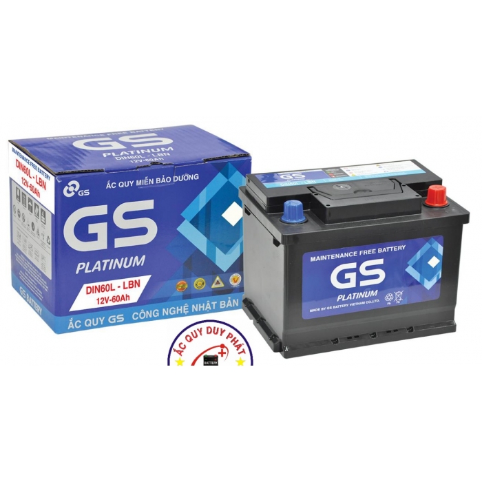 Bình ắc quy GS khô DIN60L-LBN (12V-60AH) do Công Ty TNHH Ắc Quy GS Việt Nam Sản Xuất, là một công ty 100% vốn nước ngoài, liên doanh giữa Tập Đoàn GS - YUASA - Nhà sản xuất Ắc Quy axit chì hàng đầu Châu Á, chuyên sản xuất các loại Bình Ắc Quy Ô Tô - Xe Máy và Tập Đoàn MITSUBISHI - Tập Đoàn thương mại lớn nhất Nhật Bản.