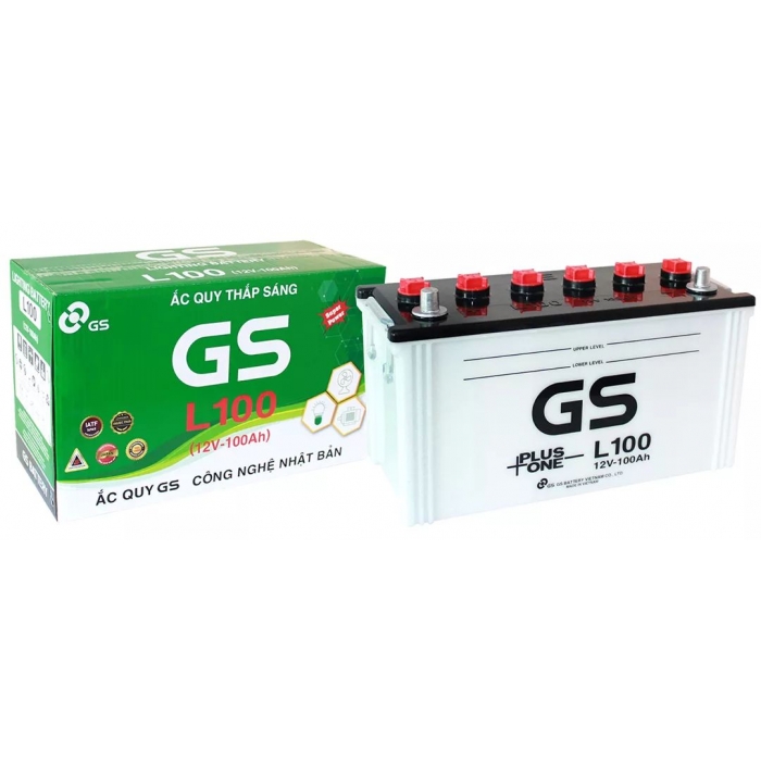 Bình ắc quy GS L100 (12V-100AH) sản phẩm mới do Công Ty TNHH Ắc Quy GS Việt Nam Sản Xuất, là một công ty 100% vốn nước ngoài, liên doanh giữa Tập Đoàn GS - YUASA - Nhà sản xuất Ắc Quy axit chì hàng đầu Châu Á, chuyên sản xuất các loại Bình Ắc Quy Ô Tô - Xe Máy và Tập Đoàn MITSUBISHI - Tập Đoàn thương mại lớn nhất Nhật Bản.