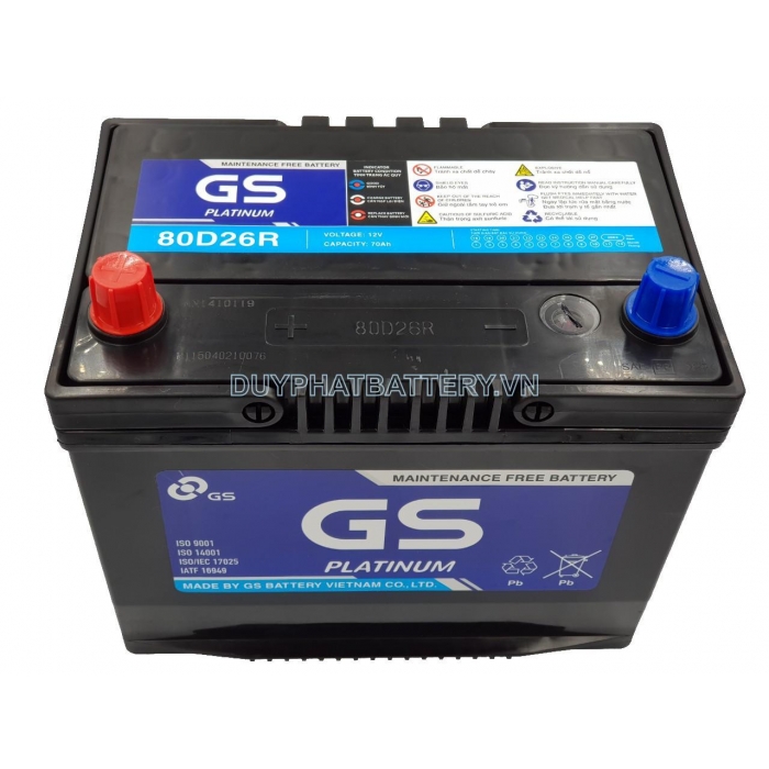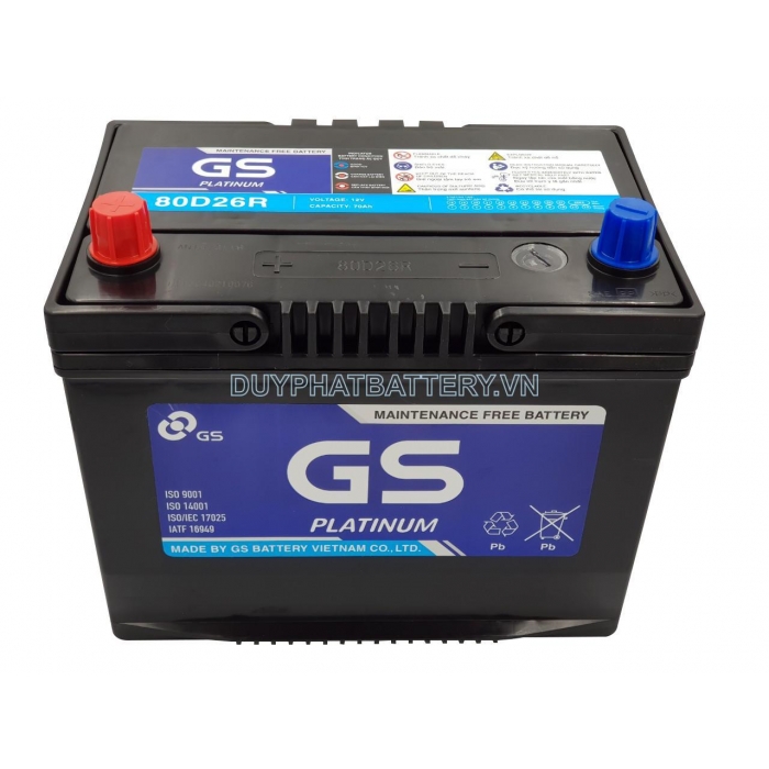 Bình ắc quy GS MF 80D26R (12V-70AH) do Công Ty TNHH Ắc Quy GS Việt Nam Sản Xuất, là một công ty 100% vốn nước ngoài, liên doanh giữa Tập Đoàn GS - YUASA - Nhà sản xuất Ắc Quy axit chì hàng đầu Châu Á, chuyên sản xuất các loại Bình Ắc Quy Ô Tô - Xe Máy và Tập Đoàn MITSUBISHI - Tập Đoàn thương mại lớn nhất Nhật Bản.
