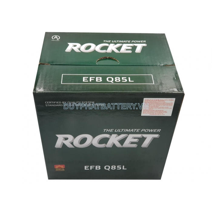 Hiện nay, giá bình ắc quy Rocket EFB Q85L chính hãng đang được Ắc Quy Duy Phát bán với giá 2.300.000 VNĐ / bình - Đây là mức giá tốt nhất hiện nay trên thị trường, được bảo hành 12 tháng. Chế độ bảo hành 1 đổi 1 cho quý khách hàng nếu lỗi sản phẩm do nhà sản xuất. Ắc Quy Duy Phát cam kết bán sản phẩm chính hãng, với giá ưu đãi nhất thị trường Việt Nam. Liên hệ ngay hotline: 0906 788 277 - 0935 77 22 55 để được tư vấn và báo giá chi tiết nhất!