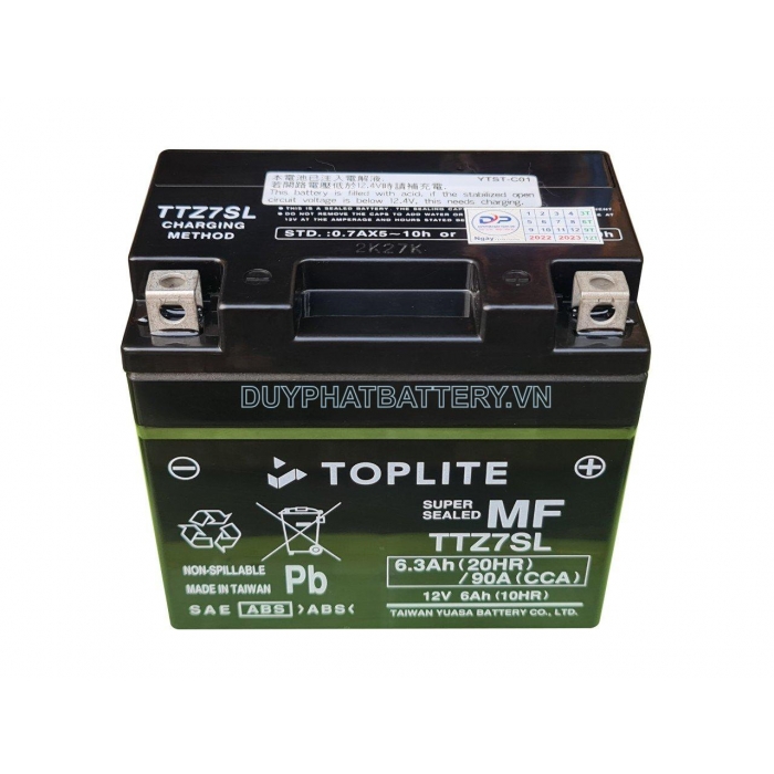 Bình ắc quy TOPLITE TTZ7SL có chữ "SL" trong tên sản phẩm thường được sử dụng cho các loại xe máy thể thao và hiệu suất cao. TOPLITE là một thương hiệu ắc quy được sản xuất bởi công ty Đài Loan - Toplite Battery Co., Ltd. Công ty này được thành lập vào năm 1993 và chuyên sản xuất các loại ắc quy cho các phương tiện giao thông đường bộ. Do đó, có thể nói rằng bình ắc quy TOPLITE TTZ7SL có xuất xứ từ Đài Loan.