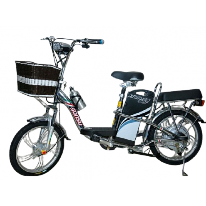 Ắc quy theo xe của xe đạp điện Sonsu inox 18inch là 4 bình ắc quy 12V-12Ah.