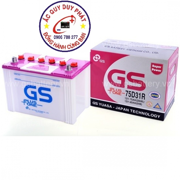 Bình GS Nước 75D31R (12V-75AH) do Công Ty TNHH Ắc Quy GS Việt Nam Sản Xuất, là một công ty 100% vốn nước ngoài, liên doanh giữa Tập Đoàn GS - YUASA - Nhà sản xuất Ắc Quy axit chì hàng đầu Châu Á, chuyên sản xuất các loại Bình Ắc Quy Ô Tô - Xe Máy và Tập Đoàn MITSUBISHI - Tập Đoàn thương mại lớn nhất Nhật Bản.