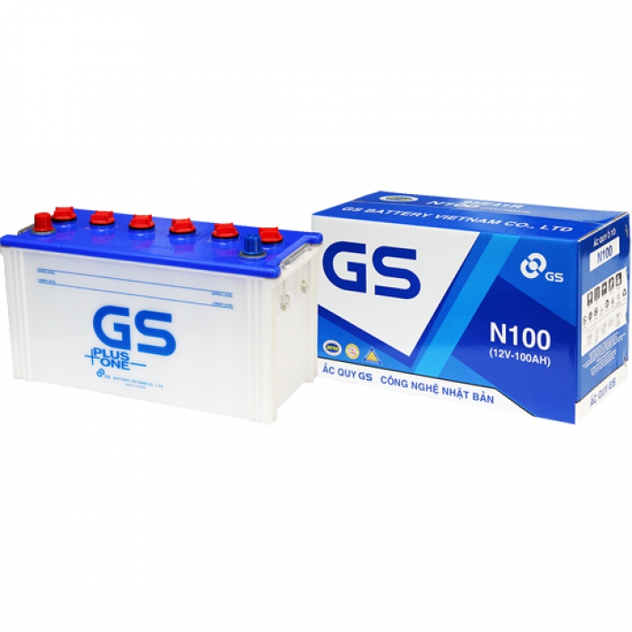 Bình GS nước N100 (12V-100AH) do Công Ty TNHH Ắc Quy GS Việt Nam Sản Xuất, là một công ty 100% vốn nước ngoài, liên doanh giữa Tập Đoàn GS - YUASA - Nhà sản xuất Ắc Quy axit chì hàng đầu Châu Á, chuyên sản xuất các loại Bình Ắc Quy Ô Tô - Xe Máy và Tập Đoàn MITSUBISHI - Tập Đoàn thương mại lớn nhất Nhật Bản.
